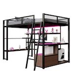 [Nombreux rangements] Les étagères de chaque côté du lit et au-dessus du bureau offrent un espace généreux pour vos livres, appareils électroniques et autres petits objets. Le placard avec porte situé dans le coin inférieur droit est parfait pour ranger vos effets personnels et les protéger de la poussière.