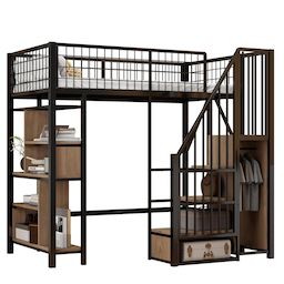 Rangements intégrés : Ce lit mezzanine dispose d'un grand espace de rangement sous le lit avec plusieurs compartiments et offre un espace généreux pour organiser votre chambre.