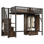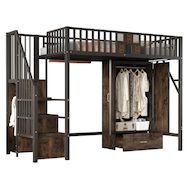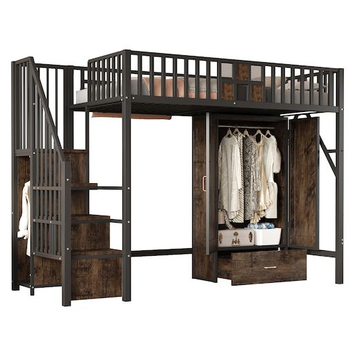 Grande armoire sous le lit – Ce lit mezzanine comprend une spacieuse armoire sous le lit, équipée d'une tringle pour suspendre les vêtements. Elle dispose également d'un tiroir extra-large pour ranger d'autres objets. De plus, l'armoire est amovible et peut être placée ailleurs dans la chambre.