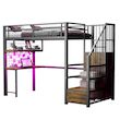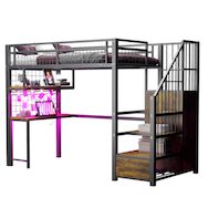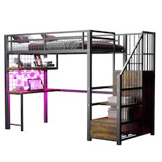 Bureau intégré avec éclairage et prises électriques – Ce lit en métal est équipé d'un bureau et d'étagères sous le lit, avec éclairage et prises électriques pour un confort optimal à la maison ou pour aménager un bureau à domicile, tout en créant une ambiance chambre unique. L'espace libre sous le lit peut être aménagé en coin salon ou en espace détente.