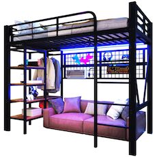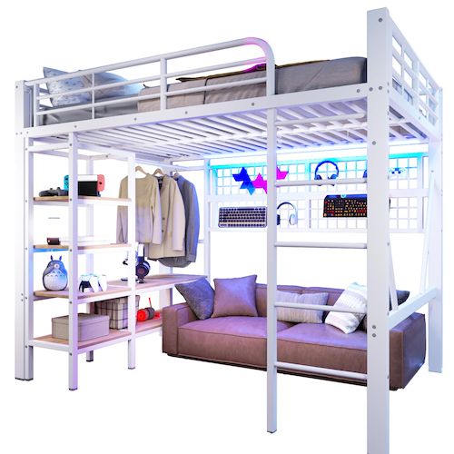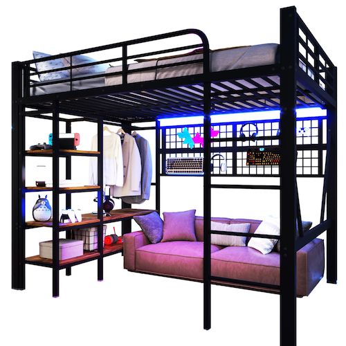 Rangement intégré, l'expert du rangement : Doté d'une étagère pratique et d'une penderie pour les vêtements, les sacs et les petits objets, ce lit vous aide à garder votre chambre propre et organisée.