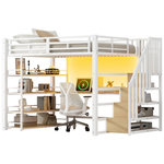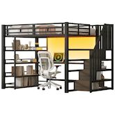 [Conception 3 en 1] Ce lit mezzanine est doté d'un bureau intégré et de compartiments de rangement. Son design compact vous permet de combiner travail et détente.