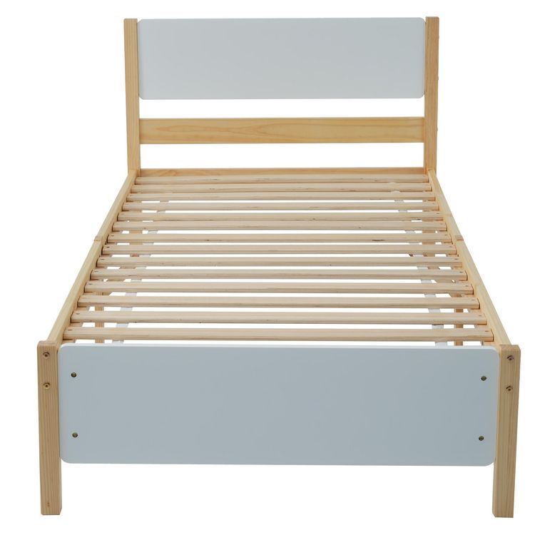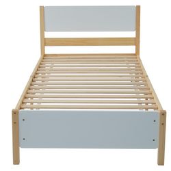 Lit simple 90x200cm bois et mdf coloris blanc+naturel
