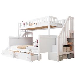 Grand espace de rangement - Ce lit superposé offre un grand espace de rangement, tant au niveau du toboggan que de l'échelle d'escalade. Deux tiroirs de rangement amovibles sous le lit facilitent l'organisation de la chambre.