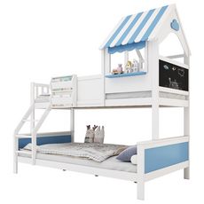 Design original : Le lit superposé arbore une combinaison de couleurs blanc et bleu, avec de petites fenêtres décoratives sur les panneaux de la barrière. Cela crée non seulement un style original, mais fait également du lit un élément particulièrement attrayant dans la chambre d'enfant.