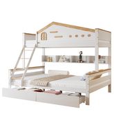 Lit superposé 90x200(140x200)cm bois et mdf coloris blanc+naturel