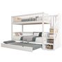 Conception axée sur la sécurité : le lit superposé supérieur est protégé par des rails sur tous les côtés, garantissant une sécurité maximale pour les enfants. L'armoire à échelle est équipée d'une main courante qui facilite la montée et la descente en toute sécurité.