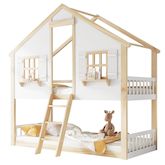 Fenêtres et toit élégants : Apportez une touche de charme magique au lit et créez une atmosphère chaleureuse dans la chambre d'enfant. Un accroche-regard visuel et une touche chaleureuse.