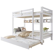 Configuration de base et composition des matériaux : Ce lit superposé blanc pour enfant de 90 x 200 cm est fabriqué en pin, Panneau composite de fibres de bois à densité et contreplaqué, alliant stabilité et durabilité.