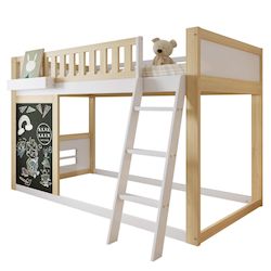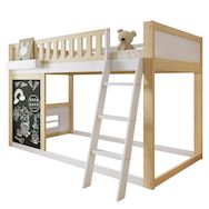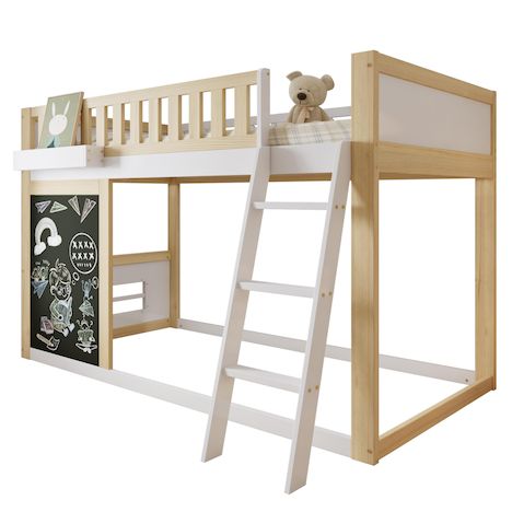 Configuration de base et propriétés des matériaux : Ce lit mezzanine enfant 90 x 200 cm en pin et Panneau composite de fibres de bois à densité blanc et naturel allie stabilité et design adapté aux enfants.