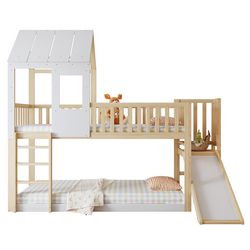 [Design] Ce lit superposé avec toboggan est fabriqué en blanc et naturel et s'adapte à tous les styles d'intérieur. Choisissez ce lit pour l'intégrer à votre décoration intérieure et donner à votre chambre une touche unique.