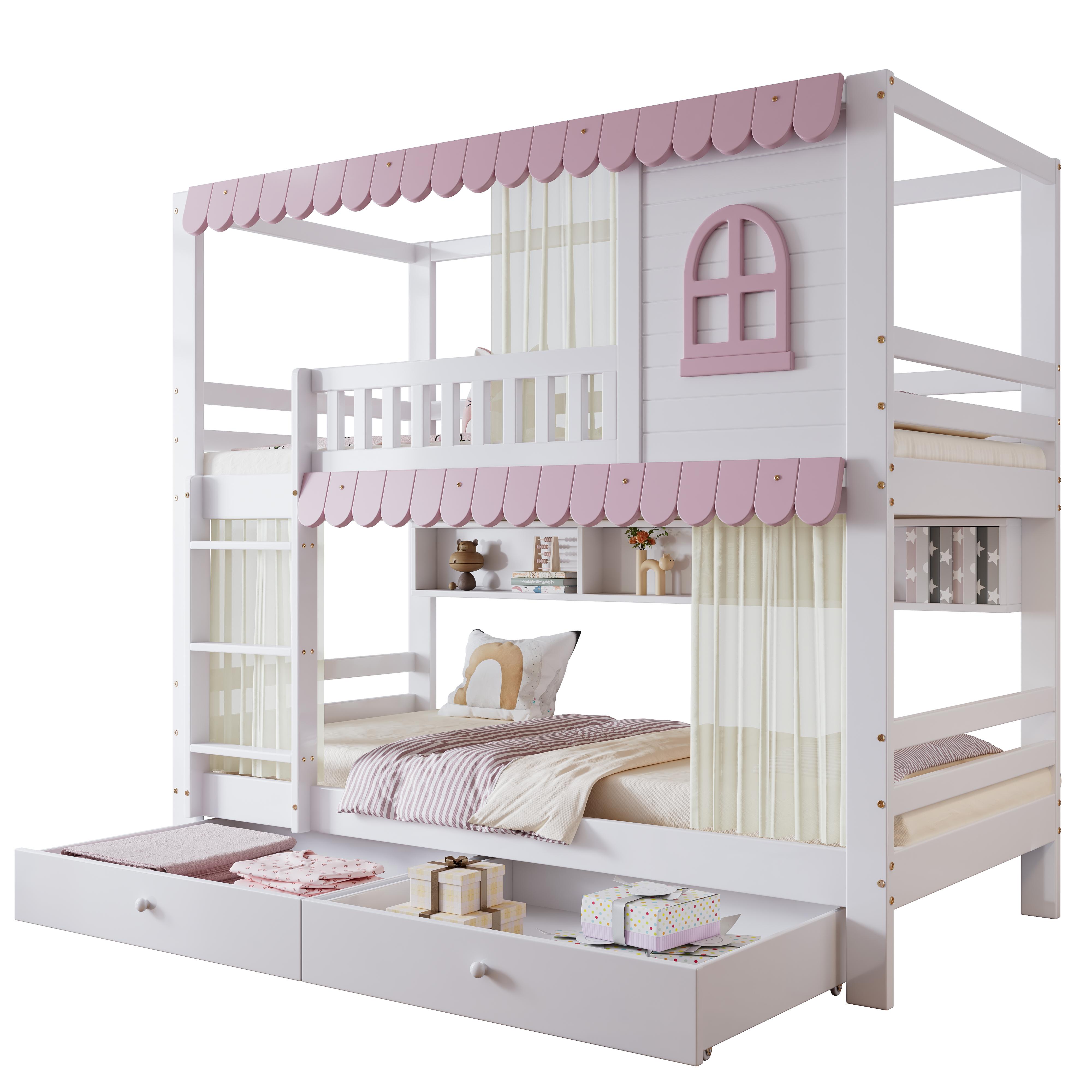 Ludique et confortable : Ce lit double rose apporte chaleur et romantisme à votre chambre grâce à son design unique et ses détails raffinés. Parfait pour les enfants qui aiment les thèmes mignons et amusants. La fenêtre rose en tête de lit reflète les rideaux blancs, donnant à votre chambre une ambiance dynamique et dynamique.