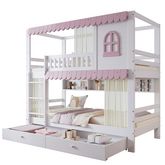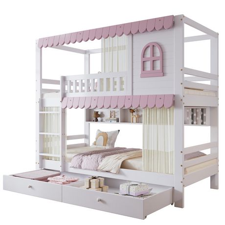Lit superposé 90x200cm bois et mdf coloris blanc+rose