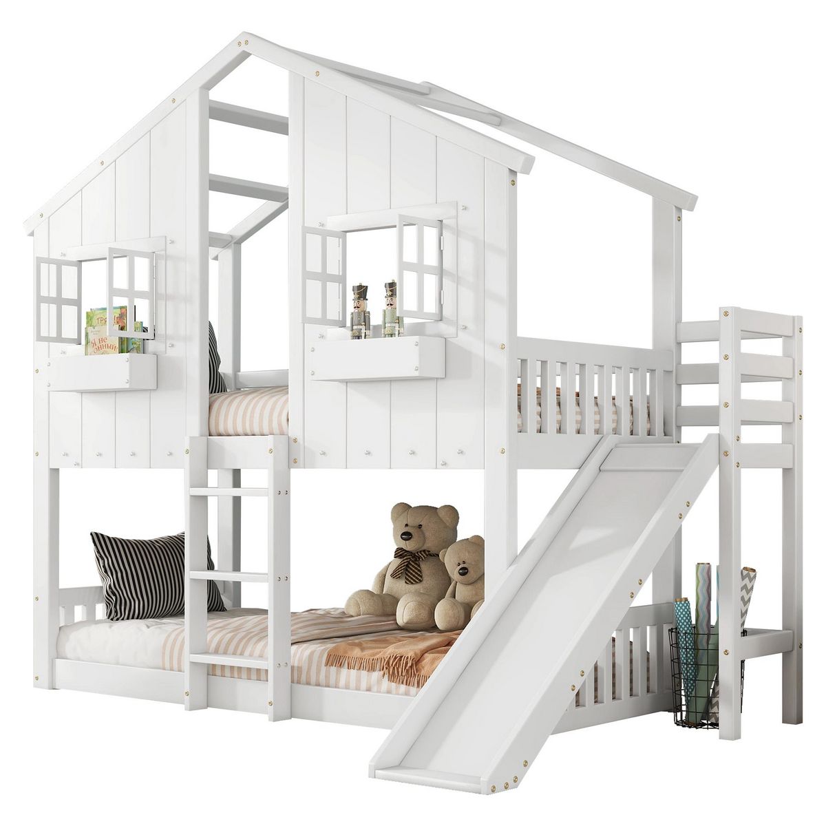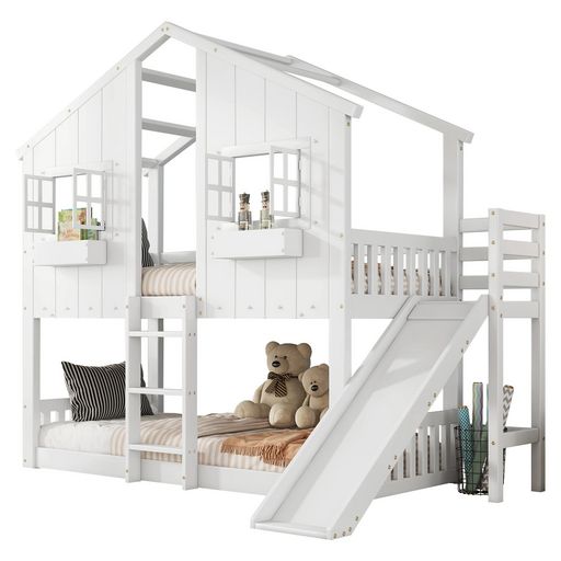 Design ludique : lit superposé avec deux grandes fenêtres comme éléments décoratifs. Cela crée non seulement un look imaginatif, mais fait également du lit un élément particulièrement accrocheur dans la chambre de l'enfant.