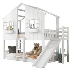 Lit superposé avec toboggan amusant : ce toboggan est fabriqué en matériau PP, qui est lisse et résistant à l'usure. La glissière est conçue avec un angle rassurant pour garantir une utilisation en toute sécurité. Le toboggan permet à vos enfants de laisser libre cours à leur énergie, de développer leur créativité et de réaliser leurs rêves d'aventure. Il s'agit d'une conception innovante par rapport aux produits de sommeil conventionnels !
