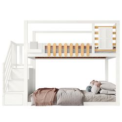 [Escaliers et placards pratiques] L'escalier facilite et sécurise le sommeil à l'étage, offrant aux enfants une sécurité et une stabilité optimales. Grâce aux rampes et aux escaliers robustes avec placards, vous pouvez ranger livres et jouets, facilitant ainsi le rangement de la chambre.