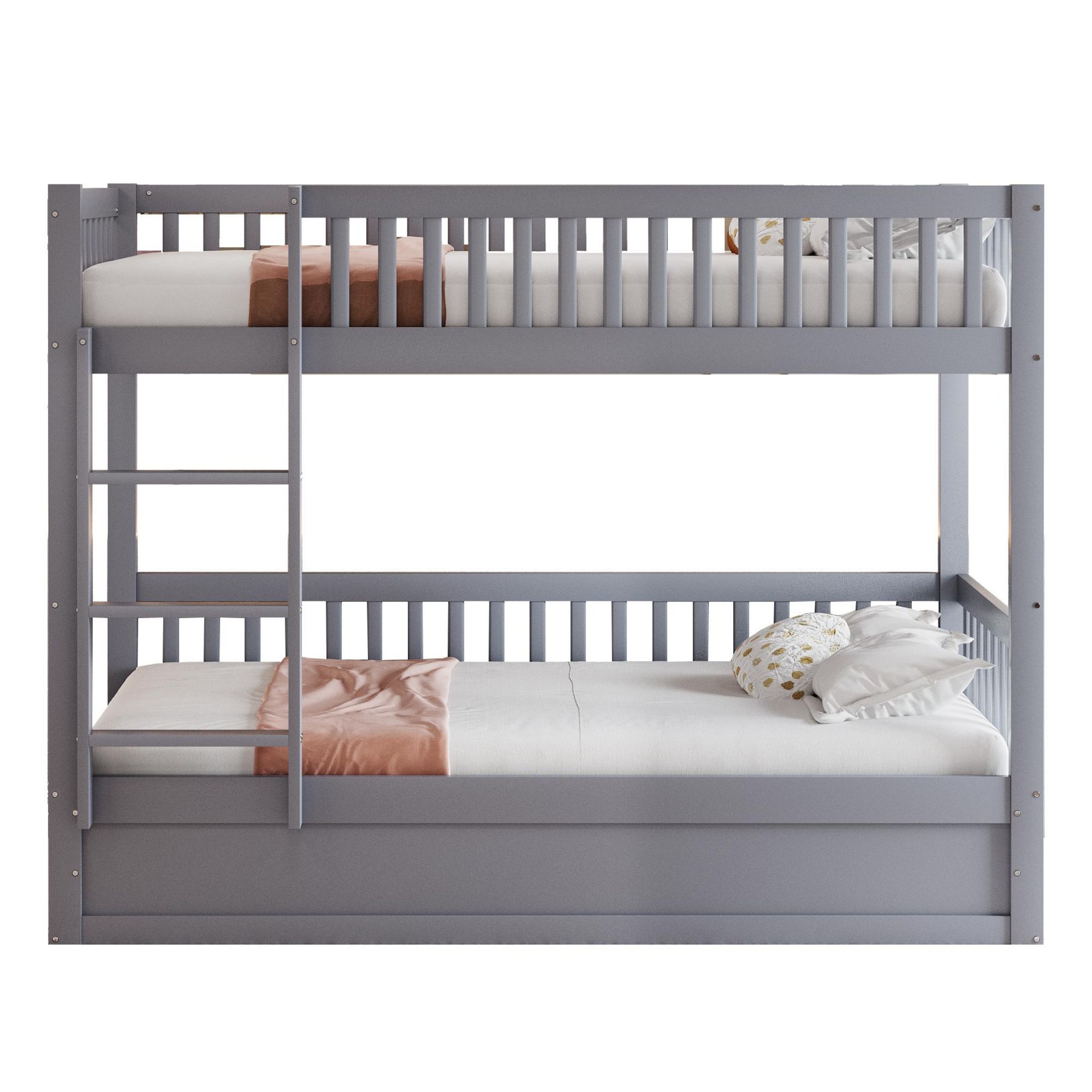 Conception de lit superposé – Parfait pour les frères et sœurs ou les invités qui passent la nuit, ce lit superposé offre deux zones de couchage dans un espace compact, permettant une utilisation optimale de l'espace. Le lit inférieur est soutenu par des sommiers à lattes denses qui offrent un support de matelas solide et une capacité de charge accrue pour une plus grande stabilité.