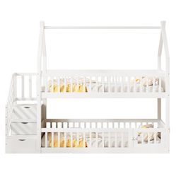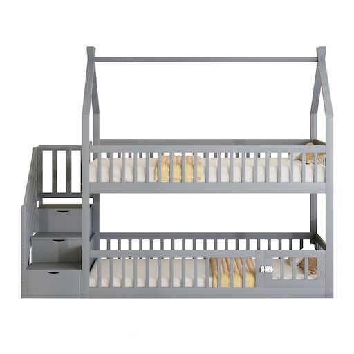 Accès sécurisé par escalier – Ce lit superposé est équipé d'un escalier au lieu d'une échelle, offrant un accès plus sûr aux enfants et aux parents. Des tiroirs intégrés dans l'escalier permettent de ranger jouets, livres et autres objets essentiels.