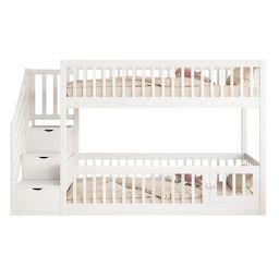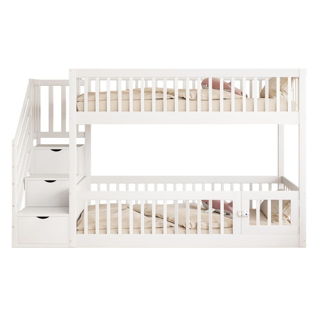 ÉCHELLE DE RANGEMENT INTELLIGENTE – Le lit superposé est doté de tiroirs intégrés sous chaque marche pour un rangement pratique des jouets, des livres ou des vêtements, pour une chambre bien organisée.