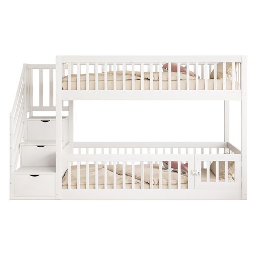 LIT INFÉRIEUR LUDIQUE – La porte à ouverture unique transforme le lit superposé inférieur en espace de jeu ludique ou en coin lecture confortable, encourageant la créativité et l'imagination. Le lit superposé inférieur peut également servir de deuxième couchage avec un matelas, idéal pour les frères et sœurs, les soirées pyjama ou l'hébergement d'invités.