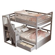Lit superposé double - Offre beaucoup d'espace pour accueillir des frères et sœurs ou des invités. Les deux lits superposés sont équipés de sommiers à lattes offrant un soutien ferme, garantissant sécurité et confort.