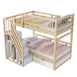 Robuste et durable - Fabriqué en bois massif robuste, ce lit superposé est durable, stable et offre un bon maintien, offrant un environnement de sommeil sûr et confortable aux enfants et aux adolescents.