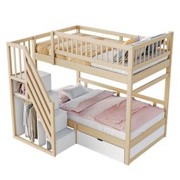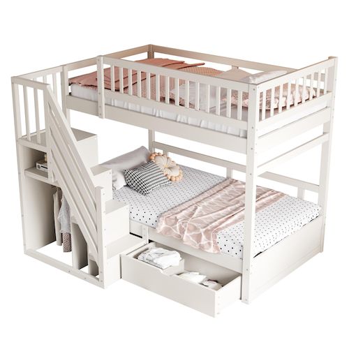 Échelle de sécurité avec rangement - Ce lit superposé est doté d'un escalier innovant avec rangement intégré, chaque marche étant conçue comme un meuble de rangement, offrant un espace généreux pour ranger soigneusement jouets, livres, vêtements et autres objets essentiels, facilement accessibles.