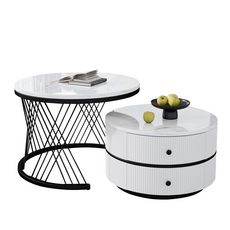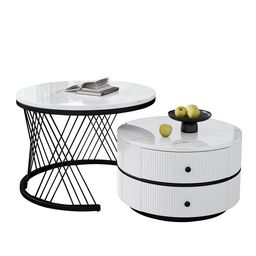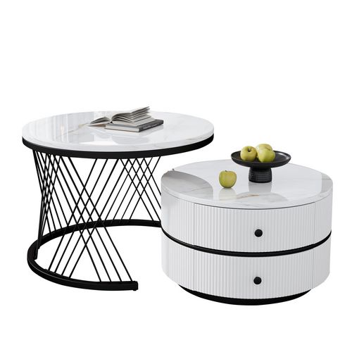 Lot De 2 Table Basse Gigognes Rond Avec 2 Tiroirs