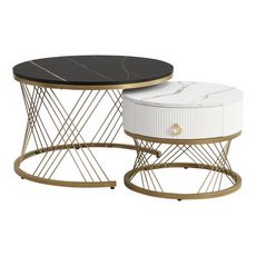 Lot De 2 Tables Basses Gigognes Rondes 50/70cm Noir Avec 1 Tiroir En Blanc
