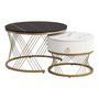 Cette élégante table basse modulable se compose de deux tables qui peuvent être utilisées ensemble ou séparément. La taille de la grande table est de 70*70*45 cm et la taille de la petite table est de 50*50*40 cm. L'aspect marbre élégant et les éléments métalliques dorés du plateau confèrent à cette