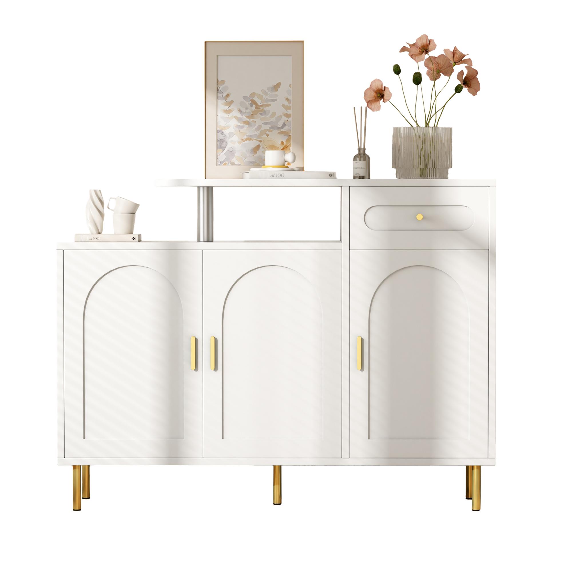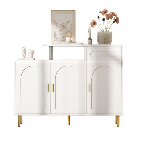 Armoire polyvalente : Cette armoire possède trois portes courbées et est équipée de poignées en métal, ce qui est à la fois esthétique et fonctionnel. Il peut être utilisé comme buffet dans le salon ou la cuisine ou comme meuble à chaussures dans le couloir.