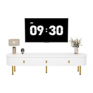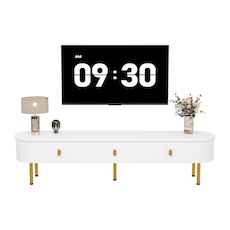 Espace de rangement spacieux : ce meuble TV est équipé de trois grands tiroirs mesurant chacun 41 cm de large, 20 cm de haut et 41 cm de profondeur, offrant suffisamment d'espace pour ranger des appareils électroniques, des accessoires multimédias ou des objets du quotidien. Chaque tiroir coulisse facilement pour que vous puissiez accéder facilement à vos articles.