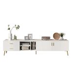 [Grand espace de rangement] Ce meuble TV dispose de 2 tiroirs, 2 placards et 3 compartiments ouverts, offrant un espace de rangement généreux pour vos DVD, produits d'entretien, livres, vaisselle et autres accessoires du quotidien.
