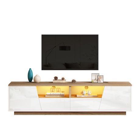 Meuble tv blanc+naturel 180 cm led panneau de particules