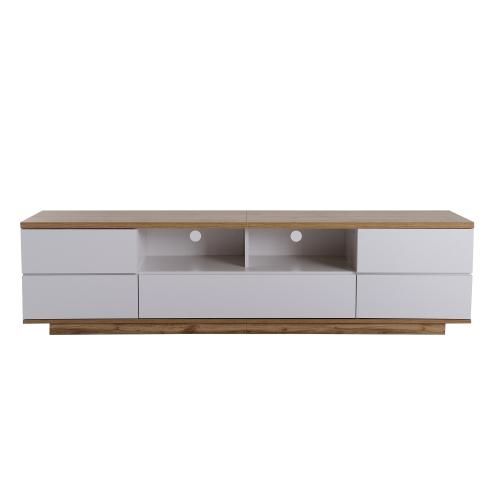 Son design harmonieux associe le blanc à des panneaux de bois, créant un style élégant et attrayant. Le panneau de porte à motif quadrillé apporte une touche d'originalité à votre salon.Fabriqué en MDF de haute qualité, ce meuble est robuste et durable, et peut supporter un poids de 50 kg.Ses cinq p