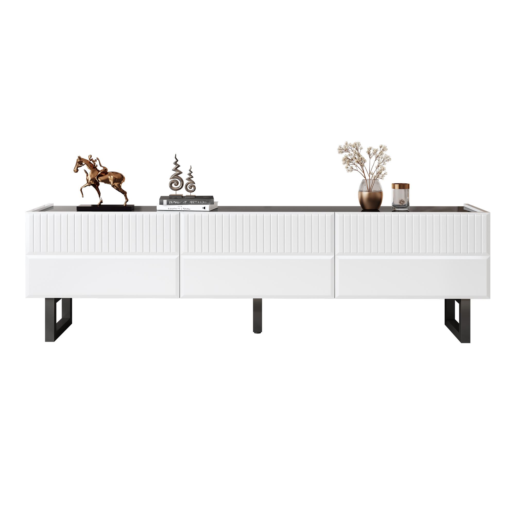 Ce meuble multifonctionnel fait office de meuble TV robuste, de grand espace de rangement et de vitrine pour vos sculptures, plantes, cadres photo et autres objets décoratifs. Créez en un clin d'œil un espace d'exposition raffiné et apportez une touche artistique à votre salon.