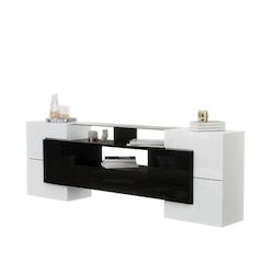 Meuble tv blanc+noir 200 cm led mdf