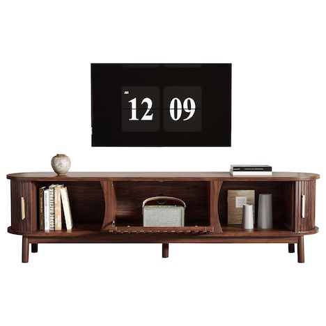 Style : Couleur marron rétro et forme en bois creux, s'harmonisant avec le style nordique et épuré. La porte coulissante et la porte à charnières sont faciles à utiliser. La grande plateforme peut accueillir un téléviseur et un vase, créant une ambiance de salon animée.