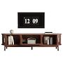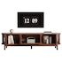 Design général : Du look vintage brun à la décoration en bois creux en passant par la structure robuste à cinq pieds, chaque design a sa fonction. La porte coulissante et la porte abattante inférieure sont faciles à transporter, la grande plateforme agrandit l'espace et le Panneau composite de fibres de bois à densité est robuste, créant ainsi un meuble TV idéal pour le salon.