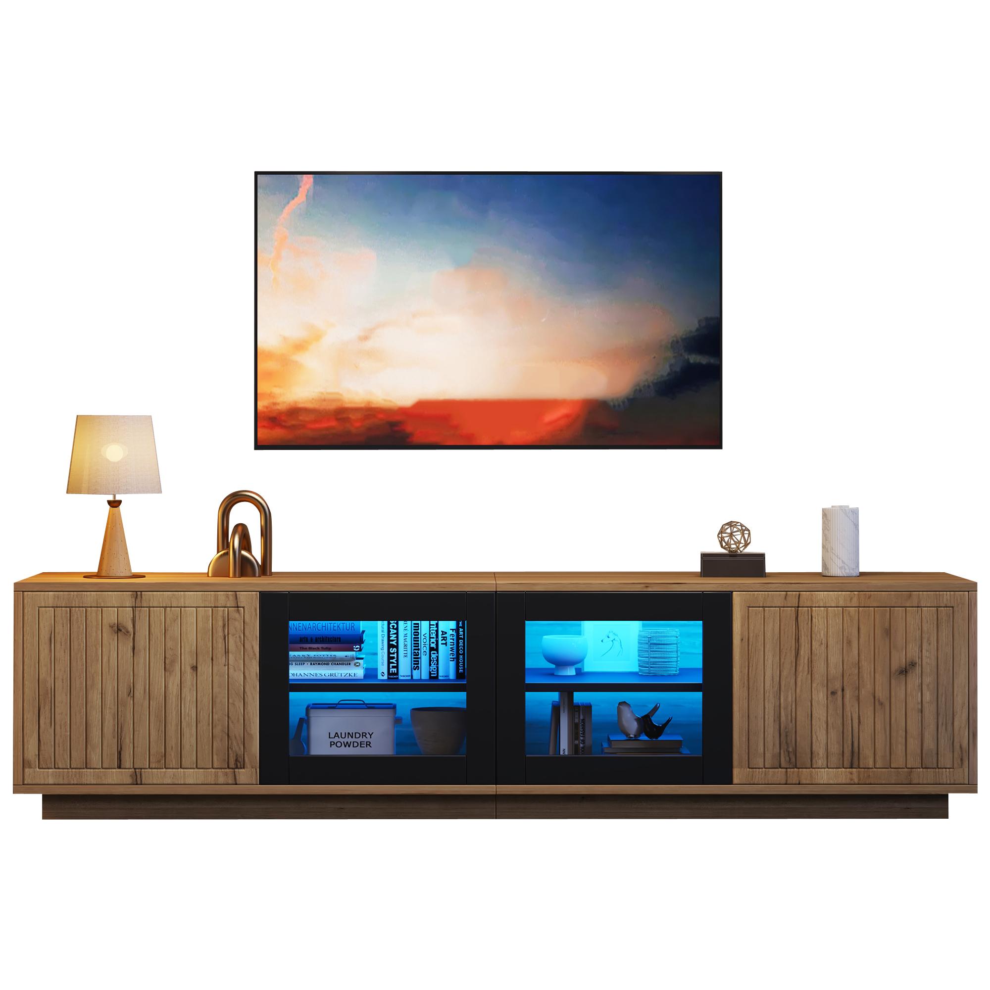 Meuble tv naturel 180 cm led panneau de particules