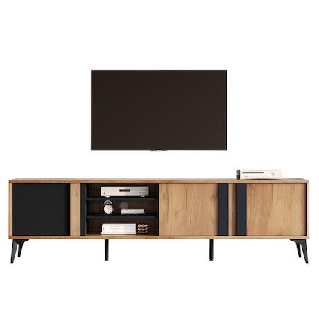 Meuble tv naturel+noir 180 cm panneau de particules