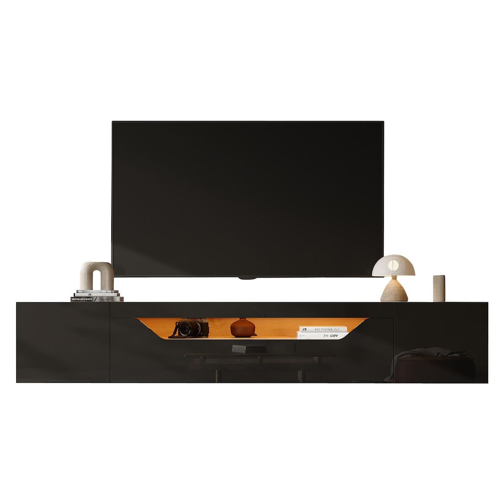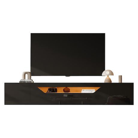 Design brillant : La façade brillante et les couleurs contrastées apportent une touche tendance à un salon sobre. La chaleur du bois d'origine neutralise le noir intense. Lorsque l'éclairage LED est allumé, l'espace est simple le jour et chaleureux la nuit, et l'apparence change selon la scène. (La position la plus visible est limitée à la façade.)