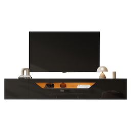 Meuble tv naturel+noir 180cm led panneau de particules