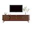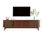Les portes de ce meuble TV sont fabriquées à partir de matériaux de haute qualité et offrent un espace de rangement généreux. Sa construction robuste et ses pieds en bois garantissent durabilité et stabilité.