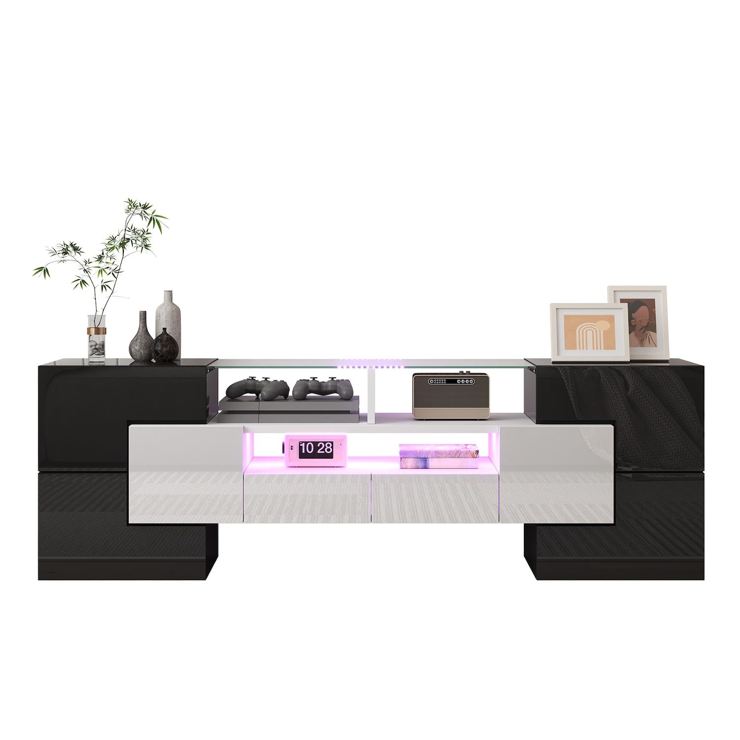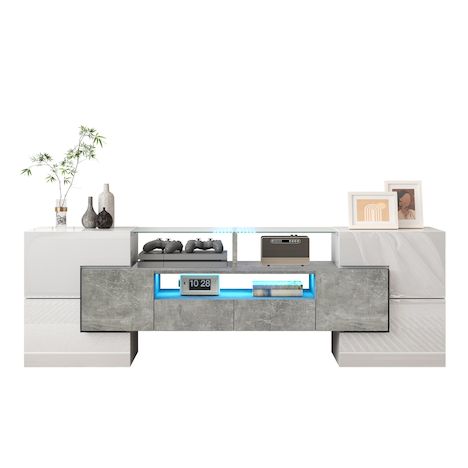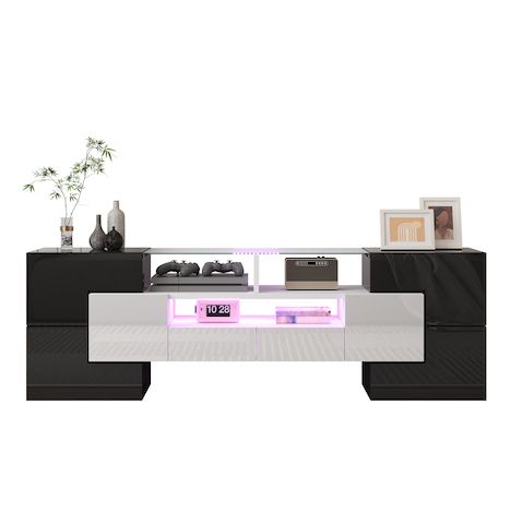 Espace de rangement généreux : avec six portes, deux tiroirs et trois compartiments, notre meuble TV offre suffisamment d'espace pour vos appareils multimédias, DVD, jeux et bien plus encore. Tout est soigneusement rangé et toujours à portée de main.
