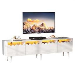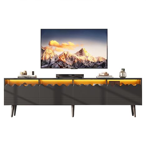 Bande lumineuse LED : La bande lumineuse LED est contrôlée via une application mobile et l'effet lumineux est transparent à travers le verre trempé. Vous pouvez choisir entre un bleu profond pour regarder un film et un or chaud pour faire la fête, faisant de ce meuble TV l'élément central de l'ambiance du salon.