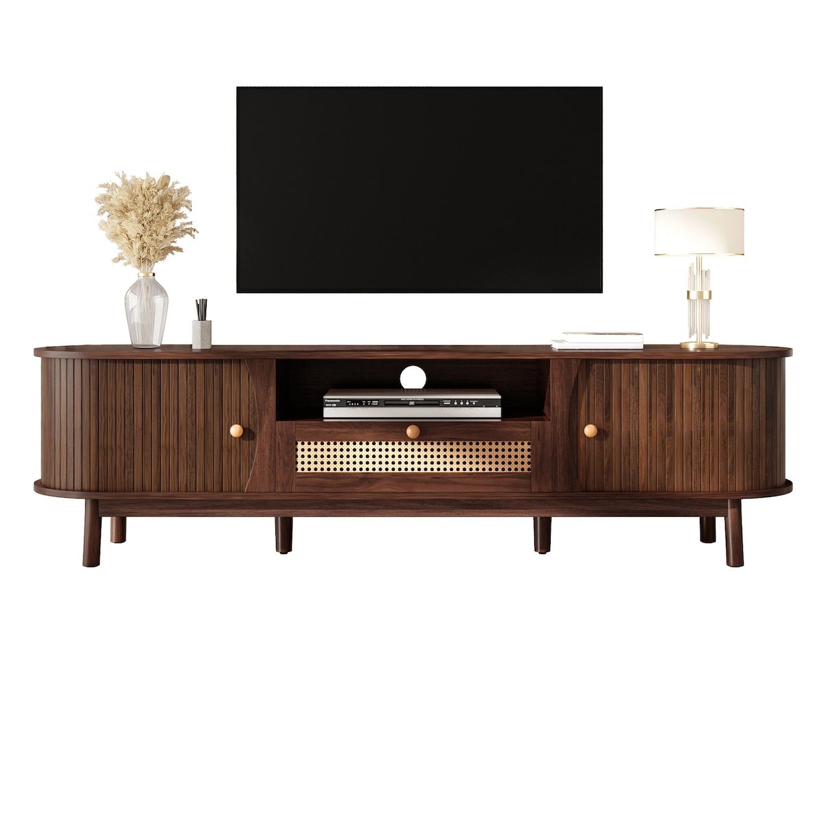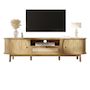 Rangement – Notre meuble TV en rotin avec portes et tiroirs apporte une touche de charme naturel à votre salon. L'association d'espaces de rangement ouverts et fermés offre une grande flexibilité.