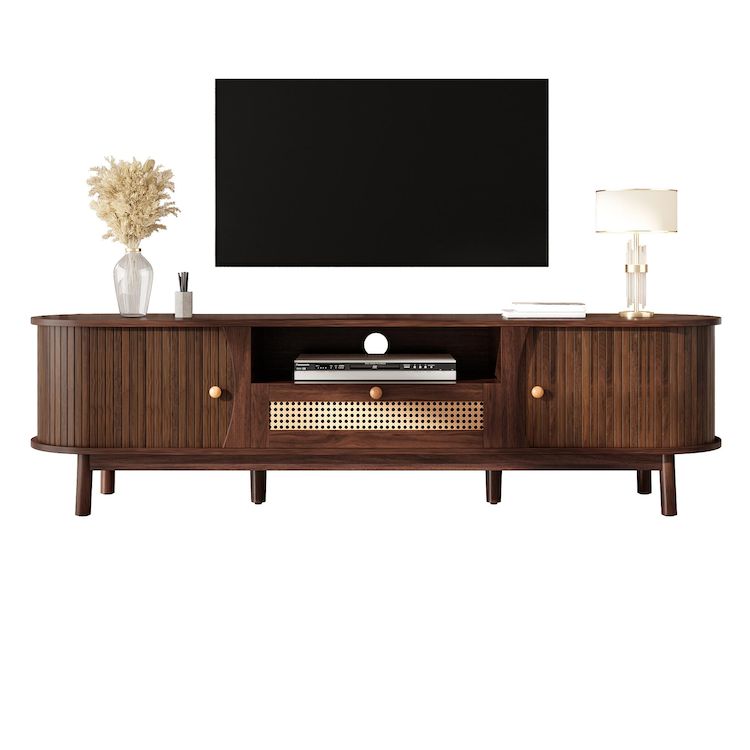 Le design des portes coulissantes confère au meuble une allure élégante, et les poignées aux formes arrondies et lisses lui donnent un aspect raffiné. Si vous recherchez un meuble au design unique, ne manquez pas ce meuble TV.