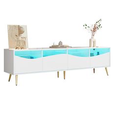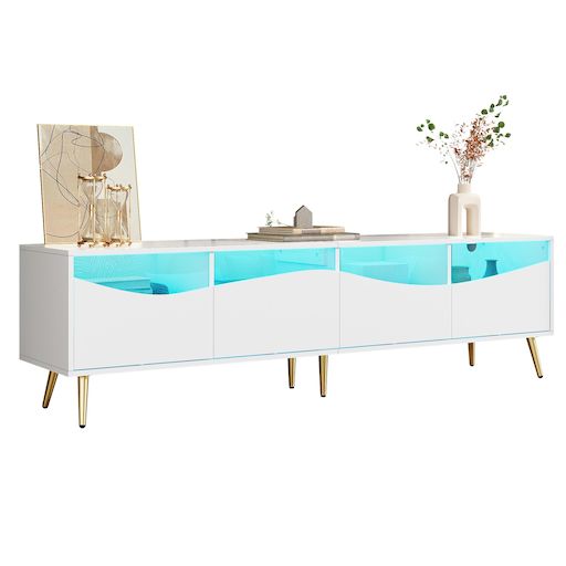 FONCTIONNALITÉ ET ÉLÉGANCE – Un meuble TV élégant allie design moderne, éclairage sophistiqué et rangements pratiques.
