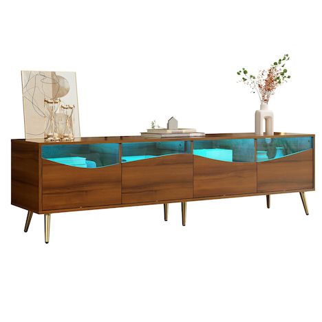 DESIGN MODERNE – Un corps en Panneau composite de fibres de bois à densité couleur bois de haute qualité, complété par d'élégantes façades en verre et des pieds en métal doré, crée une combinaison élégante pour tout salon.